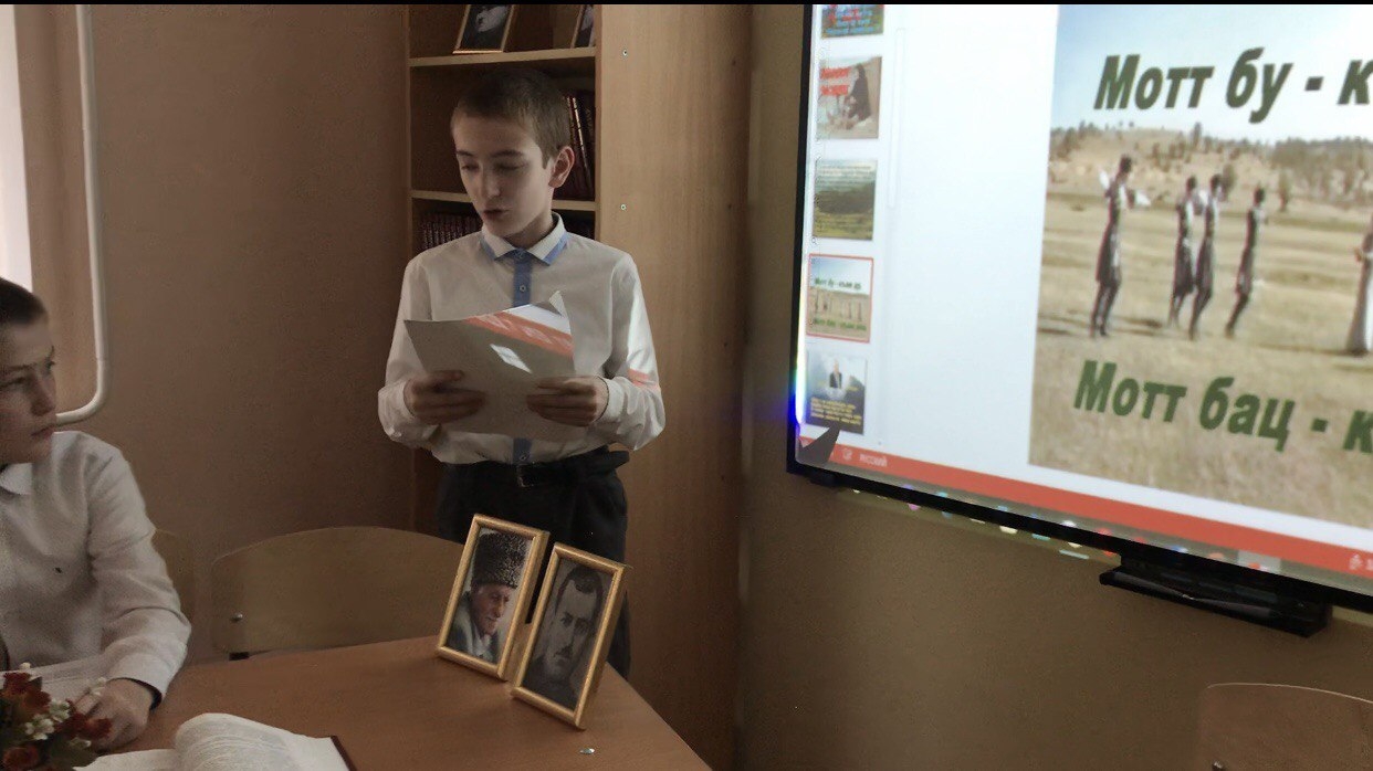 11 мая 2022г. Родной язык является основой сохранения обычаев и адатов чеченского народа. В целях привлечения внимания учащихся к родному языку, популяризации творчества авторского произведения, воспитания и укрепления любви к родному языку, культуре, традициям, обычаям чеченского народа провели урок- беседу о чеченском языке " Язык народа-- зеркало его истории". Учащиеся подготовили сценку, прочитали стихи и отрывки из произведений любимых писателей и поэтов.