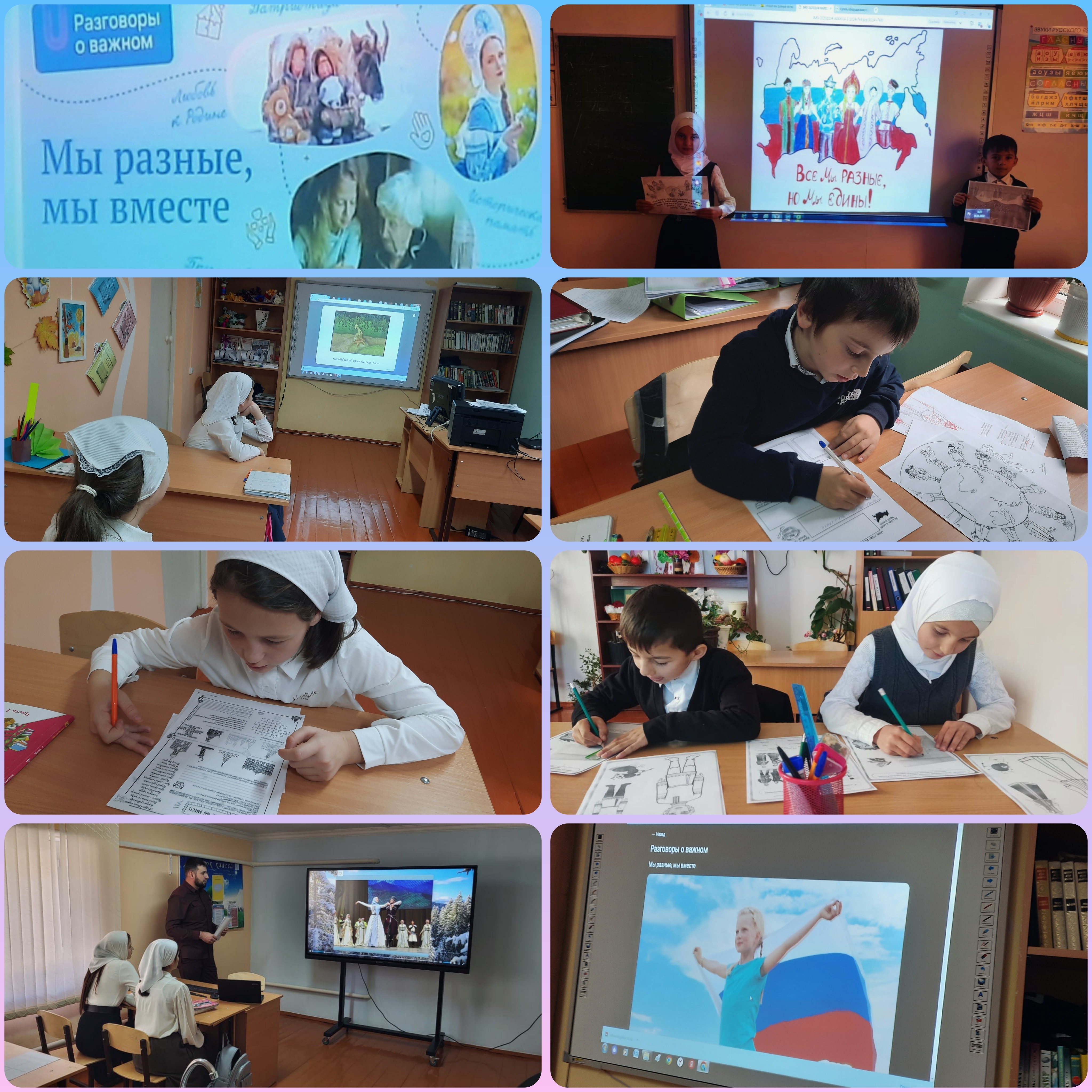 В рамках проекта " Разговоры о важном " в СОШ с.Шарой проведены классные часы на тему "Мы разные, мы вместе".