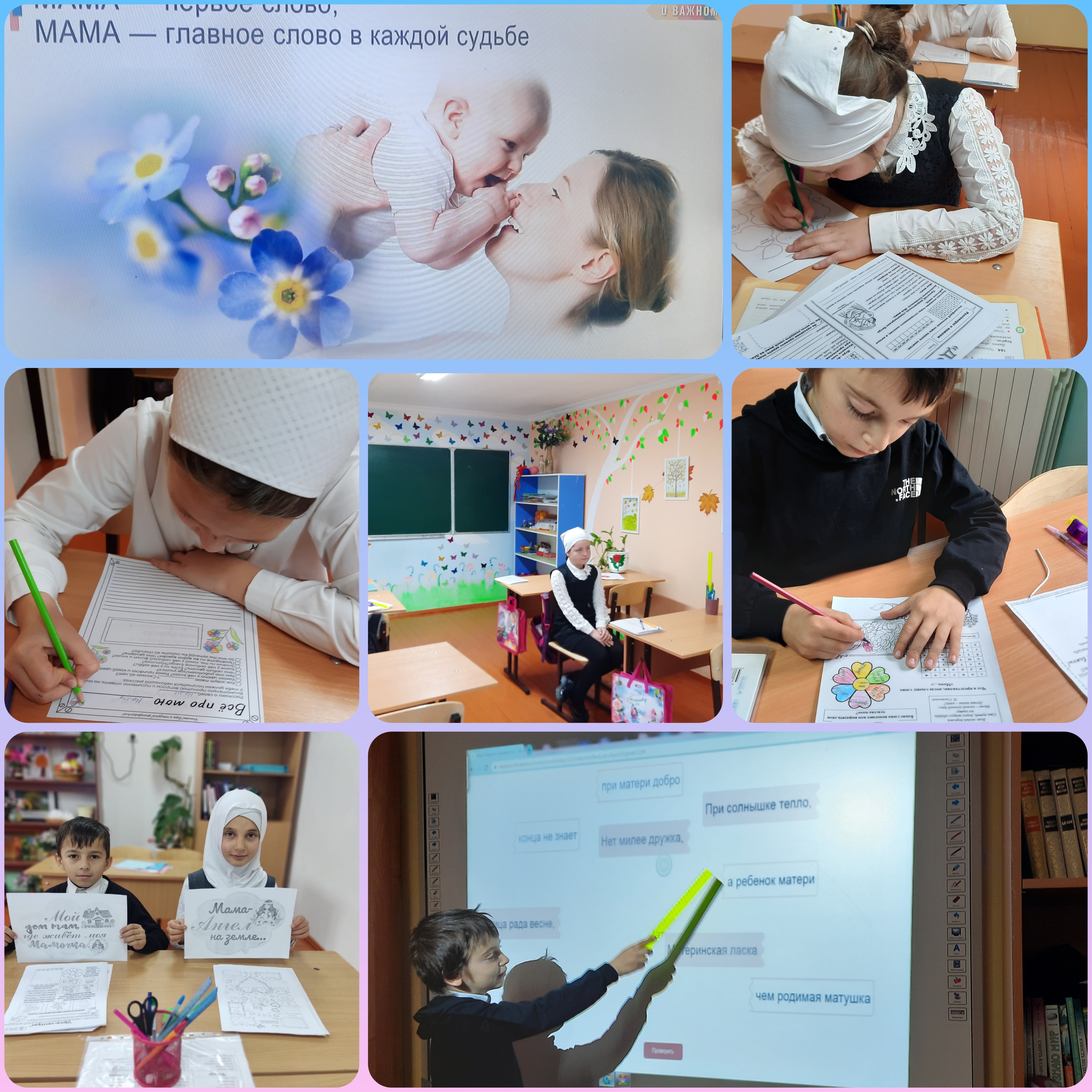 Ребята выполнили интерактивные задания и сделали тематические рисунки. В завершении мероприятия обсудили какие поступки по отношению к матери отражают уважение, любовь и заботу со стороны детей и как важно говорить почаще добрые слова своим мамам.