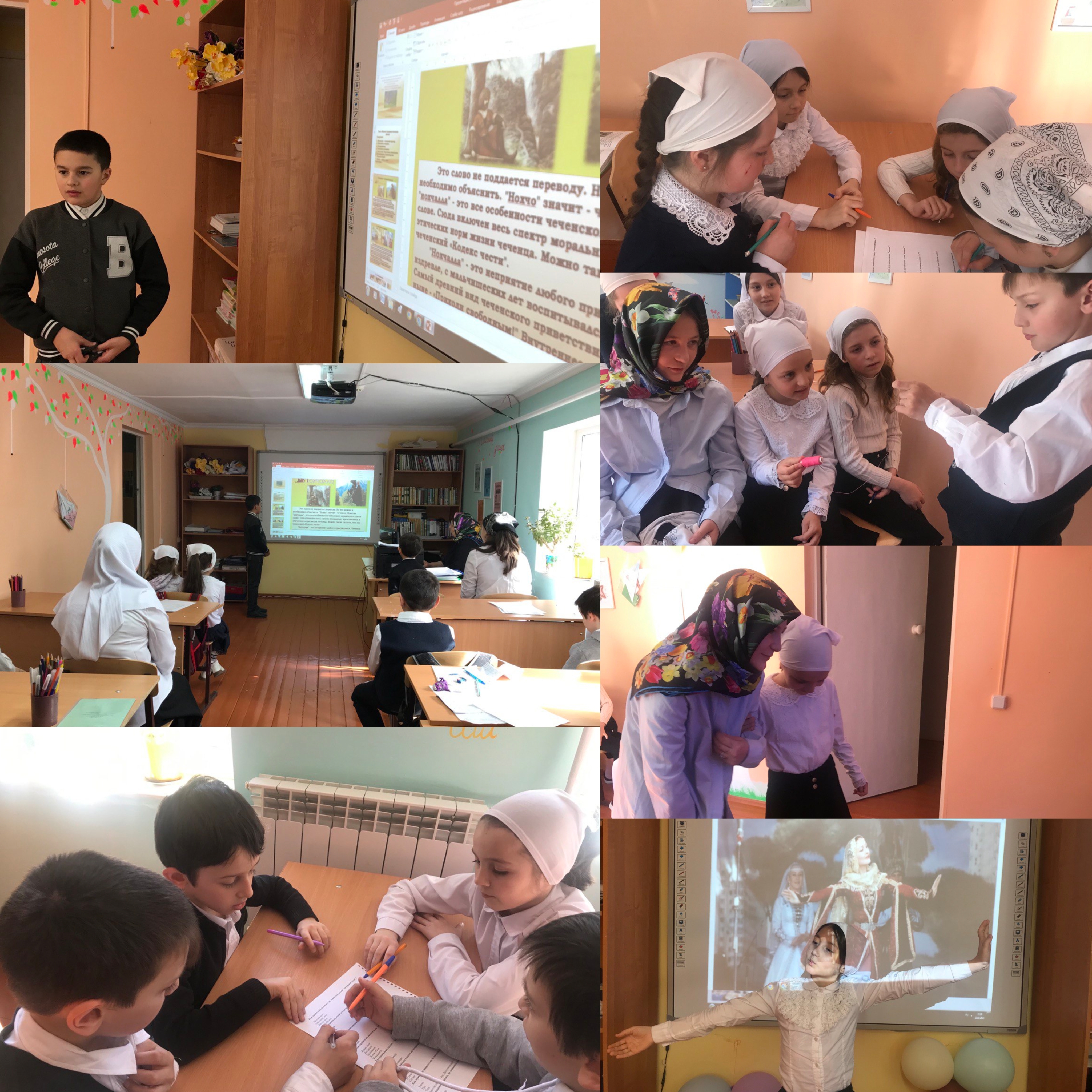 На уроке разобрали, что такое «нохчалла» – чеченский характер. Также поговорили о мужском этикете и символе чести – папахе. Папаха является не только символом чести вайнаха, но и символом мужества и достоинства.