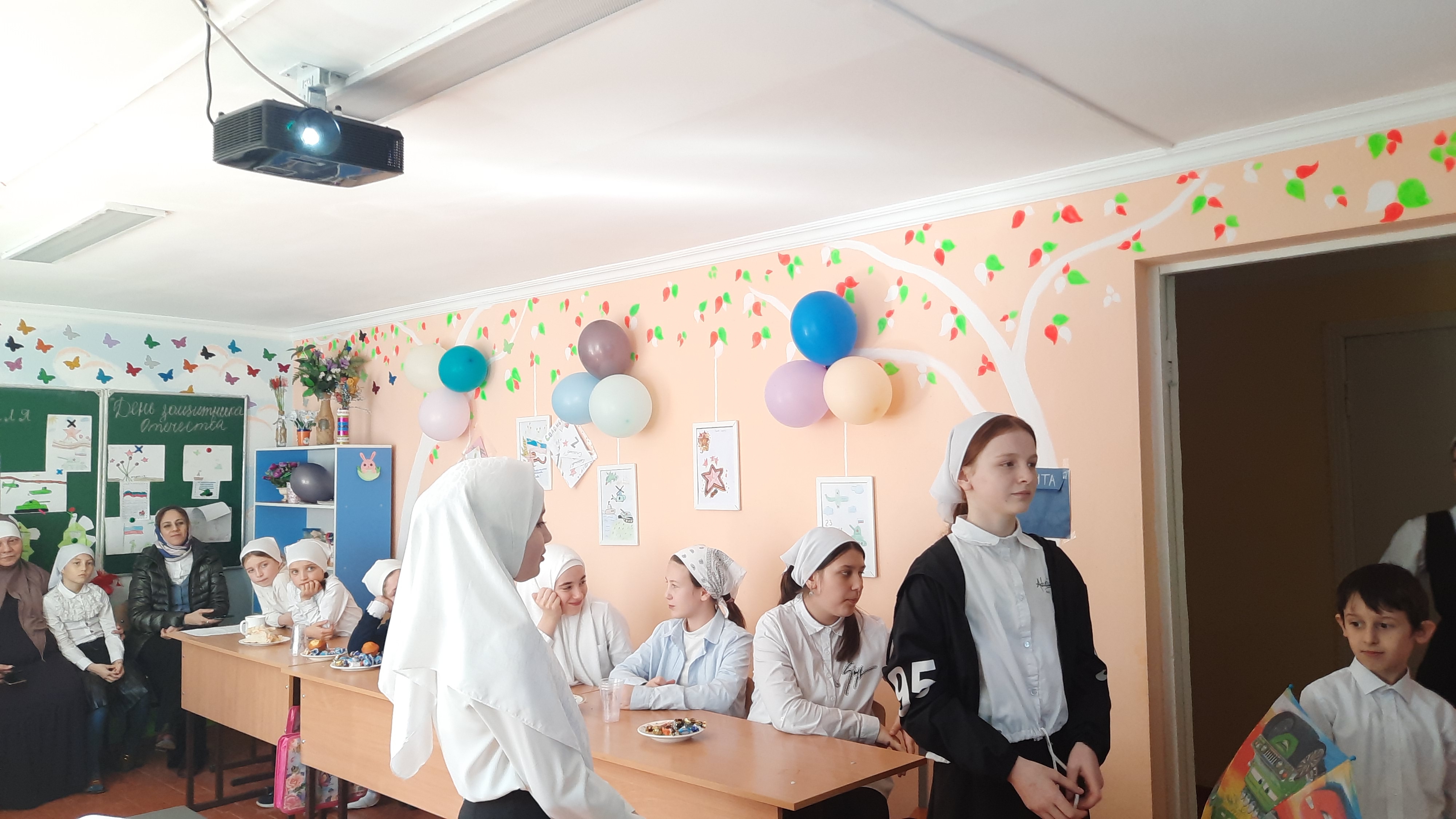 4. С учащимися 5- 8 классов проведена викторина на военную тематику. Они оживленно отвечали на вопросы, связанные с армией, исполняли приказы командира, показали свои поэтические способности, отгадывали военные загадки, показали свои умения при работе с пословицами, готовили кашу. Мальчики на протяжении всего мероприятия соревновались очень активно.