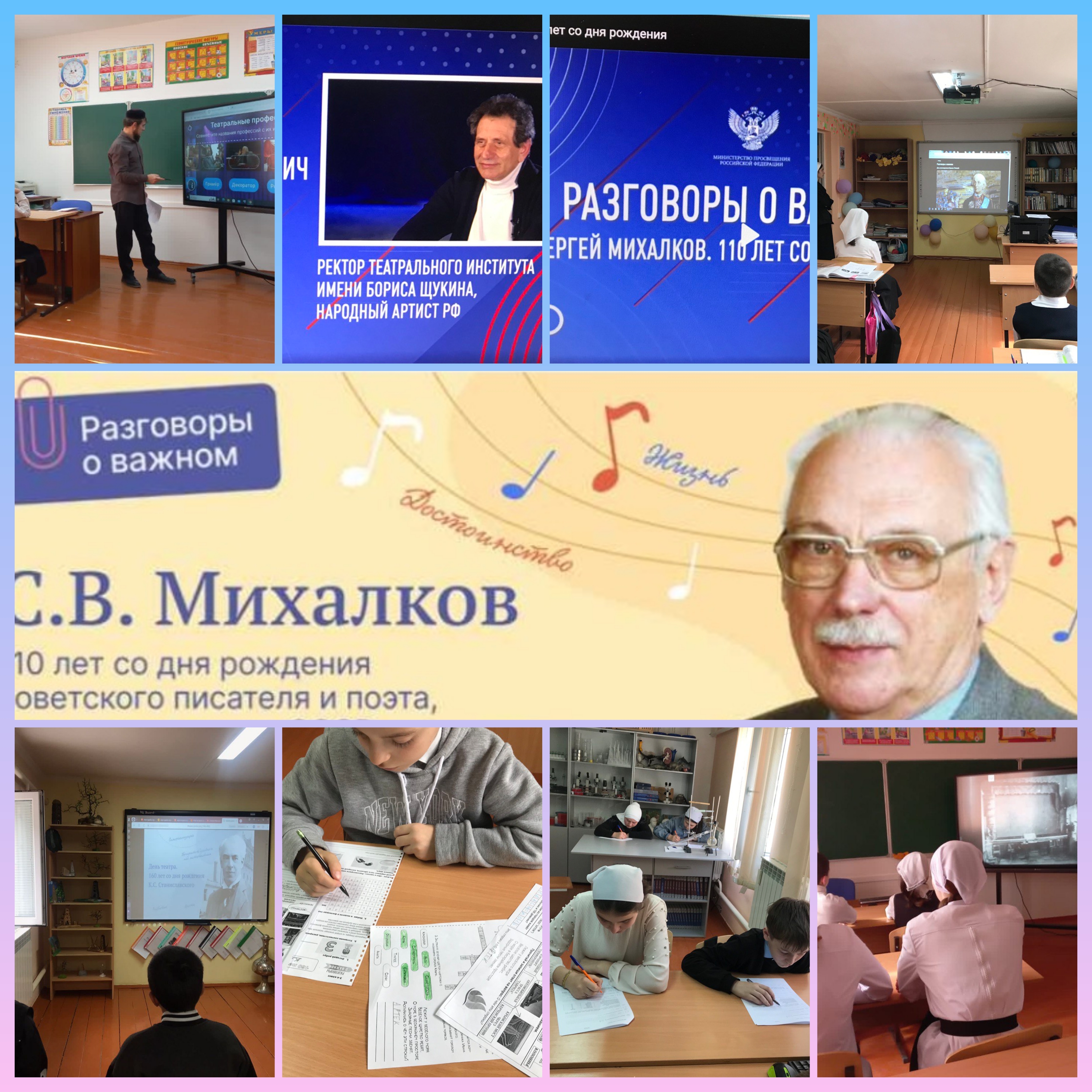 27 марта для учащихся СОШ с Шарой в рамках проекта «Разговоры о важном» прошел классный час — «110 лет со дня рождения советского писателя и поэта, автора слов гимна СССР и России С.В. Михалкова».