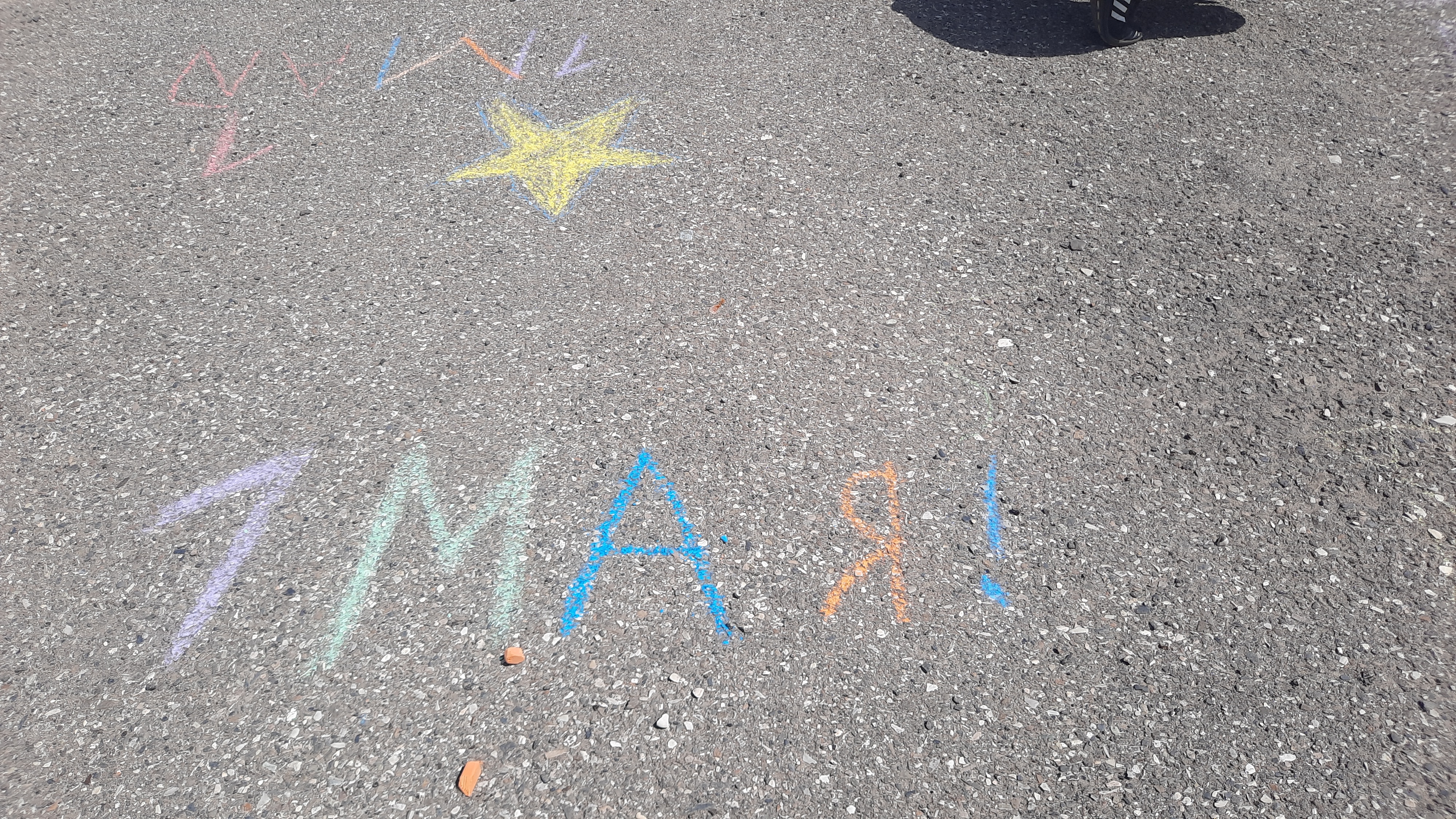 Далее был проведен конкурс детского рисунка на асфальте. За определенное время представители каждого класса рисовали свои представления о мире, о дружбе, используя цветные мелки.