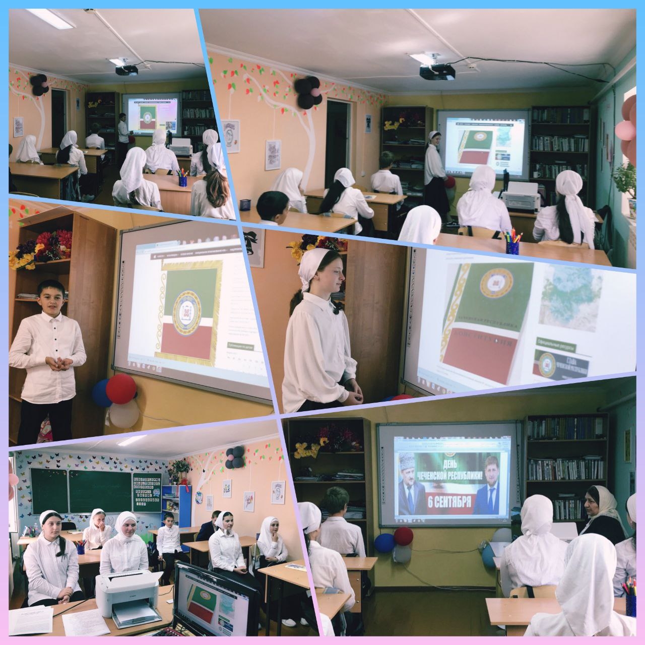 6 сентября 2023г в СОШ с.Шарой проведен классный час, посвящённый Дню Чеченской Республики ( День гражданского согласия, единения ). В ходе классного часа учащиеся познакомились с историей возникновения праздника, с символами Чеченской Республики. Проведена беседа о подвиге Первого Президента Чеченской Республики , Героя России Ахмата-Хаджи Кадырова.