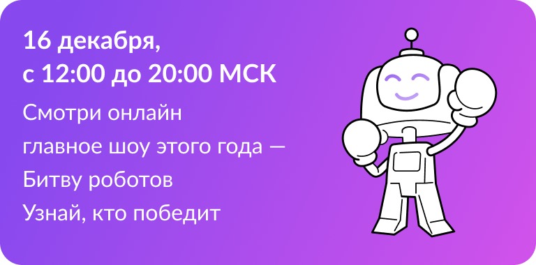 08.12.2023В сентябре и октябре 2023 года прошли два отборочных этапа Чемпионата с участием 58 команд из России, Китая, Турции, Индии и Казахстана.Полуфинал и финал Чемпионата пройдут 16 декабря 2023 г. в г. Москве, в которых примут участие 16 команд из России, Китая, Турции и Индии.Зрителей ждет два шоу (с 11:00 до 20:00 по московскому времени), а также познавательная программа.Цель Чемпионата - привлечь внимание к современным и перспективным технологиям, востребованным направлениям инженерных наук, стать двигателем робототехнического движения и сформировать у участников Чемпионата потребность к получению новых знаний и компетенций.