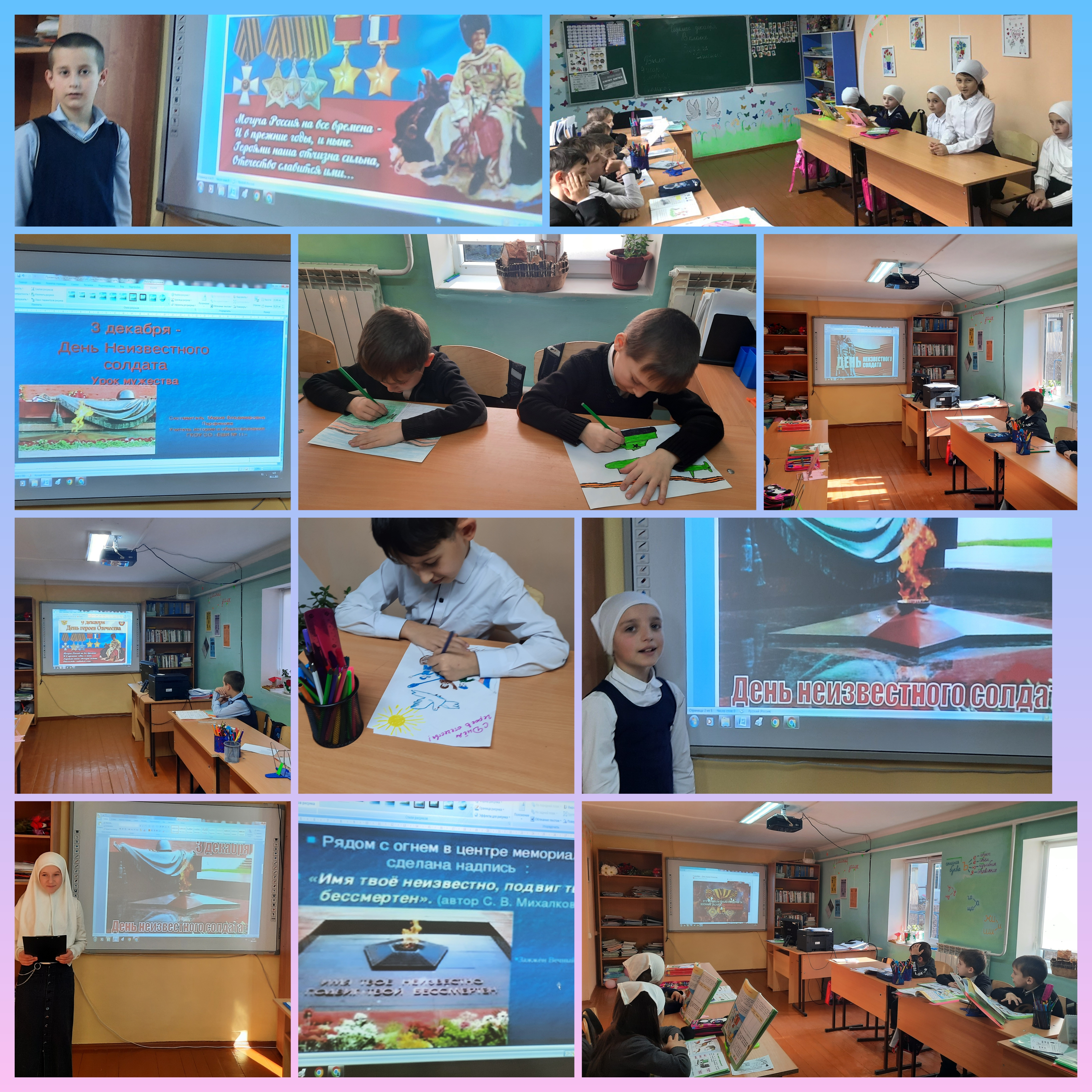 В этот день в школе в рамках классных часов вспоминали безымянных героев, защитников Отечества, погибших в годы Великой Отечественной войны, известных под именем «Неизвестный солдат», которые сложили голову во имя Отчизны, но не сложили оружия и стояли, и жили, и воевали до последнего вздоха. Лишь немногим героям удается вернуть имена, остальные так и остаются «неизвестными солдатами».