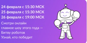 Суперфинал Чемпионата пройдет 24 февраля (с 15:30 до 17:30), 25 февраля (с 15:30 до 16:40) и 26 февраля (с 19:00 до 21:30). Мероприятие станет масштабной площадкой для международного взаимодействия вовлеченных в сферу робототехники людей и популяризации инженерных профессий среди школьников и студентов за счет создания серии ярких событий федерального масштаба.